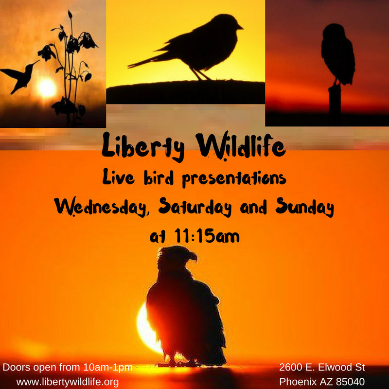 Liberty WildlifeLive bird presentations Wednesday, Saturday and Sundayat 11_15am